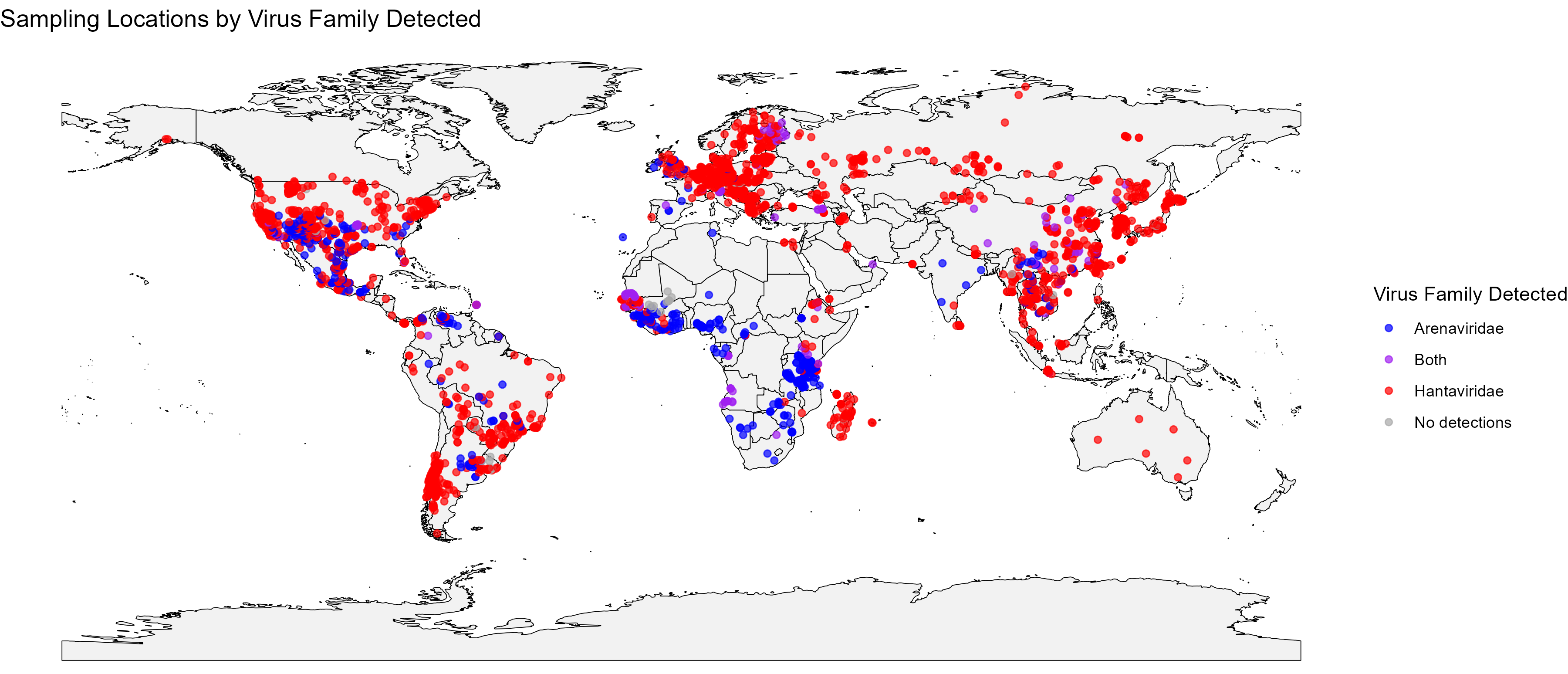 With Dr. Stephanie Seifert we are leading a project synthesising published sampling records of small-mammals for arenaviruses and hantaviruses. This work is being supported by the Fellows-in-Residence programme of the Verena consortium. We are collaborating with Dr. David Redding and his group at the Natural History Museum in London.